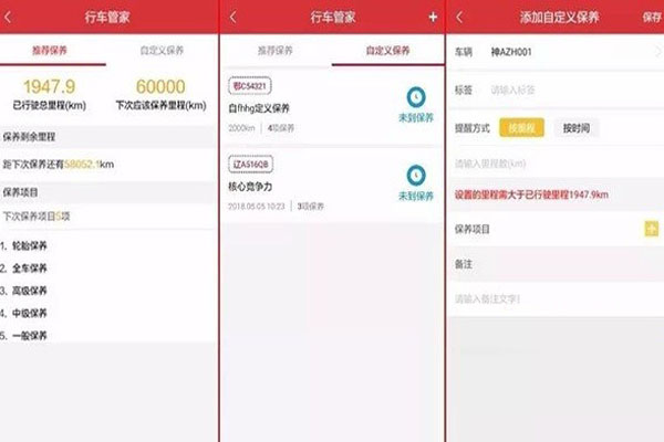 及时保养是保证车辆健康运营的重要保证,行车管家可以根据车辆的行驶状况,定期提醒卡友们保养车辆,以及需要保养的项目。除此之外新增自定义保养功能,APP会自动提醒卡友进行保养,老司机再也不用担心忘记保养时间啦!