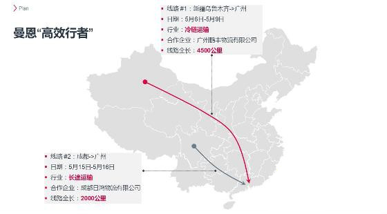 近年来,随着“西部大开发”战略的不断深入,成都地区的经济货运量不断加大,现已成为中国重要的物流集散地之一。作为中国西南地区重要的经济动脉,成都至广州沿线始终保持着运力繁忙的状态。近两年来,曼恩在南方市场销售的车辆中,有30%都投入到了这条重要路线中。