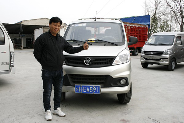 “我身边开福田汽车的人很多,福田祥菱是大品牌,口碑很好。”于是,他直奔瑞平汽贸,在听完“白色的车身很洋气,整体的大小适中,后斗的工作板很厚,拉重载很靠谱!”的介绍后,不愿下车的李学军当场就全款四万元购买了新车。