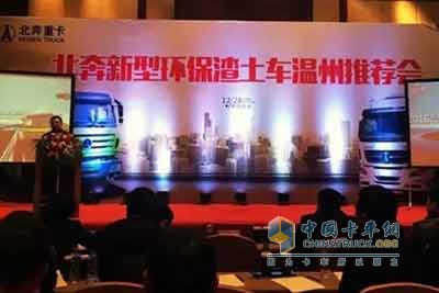 2016年12月28日,北奔重汽经销商温州骏通汽车销售有限公司在温州地区举行北奔V3ET高效版牵引车上市发布会、新型城市智能渣土车推介会。北奔重汽对本次会议非常重视,北奔重汽集团总经理助理、营销公司总经理齐玉兴,华东大区经理王大军等相关领导参加了活动。同时邀请到宁波鄞州银行、潍柴动力公司浙江办、恒天大迪等多家合作企业参加活动。