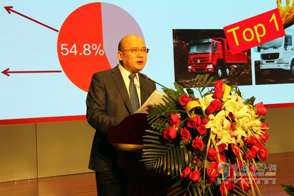 2017年1月6日,以“转型升级 引领未来”为主题的中国重汽销售部商务大会在济南召开。在会上,中国重型汽车集团有限公司董事长、党委书记马纯济表示,在刚刚过去的2016年,对于中国重汽销售部来说注定是不平凡的一年,无论是宏观经济形势压力,还是市场政策洪流冲击。就是在这种境遇下,中国重汽砥砺前行,实现逆势增长,集团公司全年销售整车突破20万辆,同比增长28.4%;其中重卡12.3万辆,同比增长25%;销售收入超过700亿元,同比增长14%。其中中国重汽销售部作为营销尖兵,在第四季度出现供不应求的火爆局面,全年新接订单同比增长53.4%。