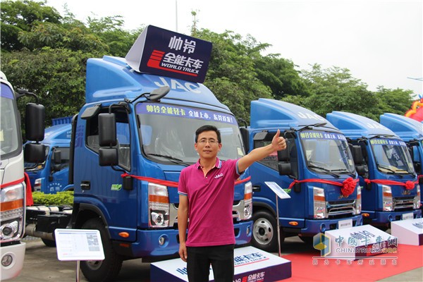 在发布会现场,东莞骏汇汽车销售有限公司总经理黄志强表示,目前东莞物流以城间短途运输为主,当地用户对帅铃产品也非常认可。2016年,东莞地区仅帅铃的销量就已超过2500台,今年1-4月,帅铃轻卡的销量已经突破1000台。如今,帅铃全能卡车在东莞上市,同时江淮全品系国五产品也全部到位,对于今年的市场,黄总充满信心。