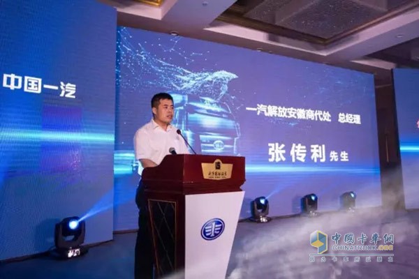 一汽解放安徽商代处总经理张传利先生为六大英雄颁发了奖品和奖杯