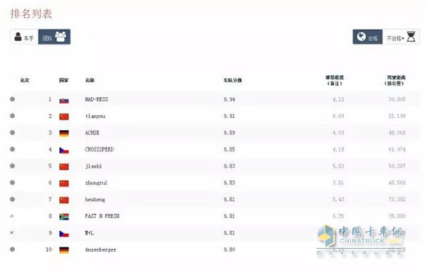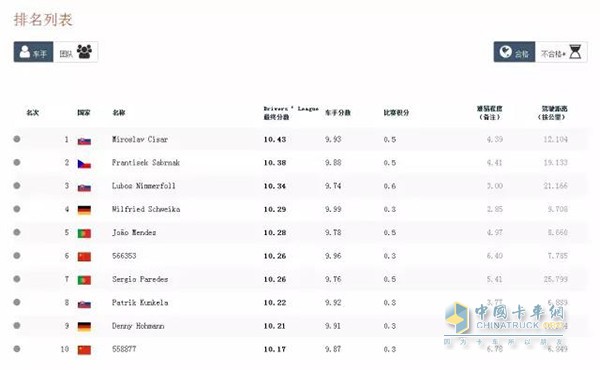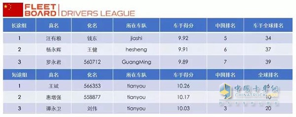 中国赛区长途运输组及短途配送组前三甲车手榜单