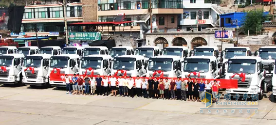 2017年7月14日上午10时18分,伴随着一阵喜庆的鞭炮声,山西地区50台中国重汽豪瀚MT13 LNG牵引车交付用户。