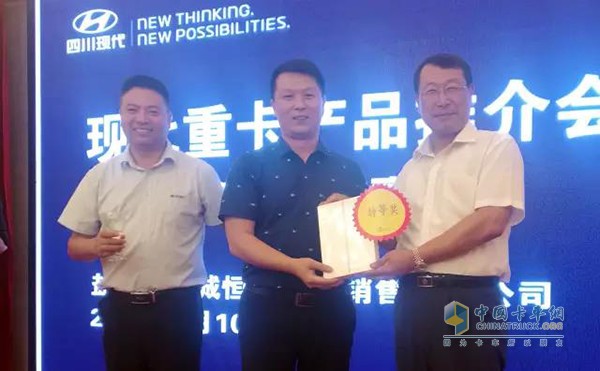 随后,四川现代华东办事处主任张富祥对创虎4×2平顶牵引车进行产品介绍。他表示,这款车型是四川现代引进世界先进技术进行研发生产的,一方面满足了客户对强劲动力的需求,另一方面也解决了长距离运输的问题,而且在车辆燃油、节能、环保、可靠性、舒适性、操控性、安全性方面有着显著优势。