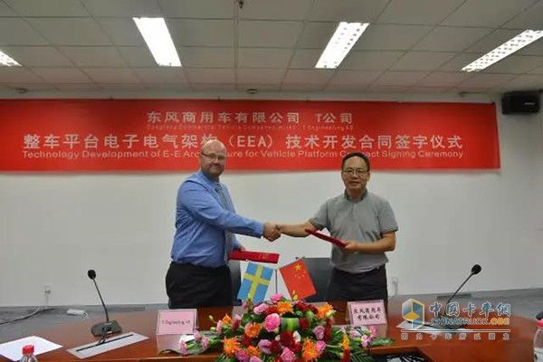 2017年9月8日,东风商用车有限公司与瑞典T Engineering AB公司(以下简称“T公司”)签订整车平台电子电器架构(EEA)技术开发合同。