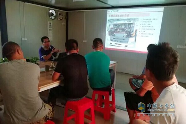 本次广汽日野培训小组根据客户的实际需求,针对深圳宏诚物流管理层、培训组、维修主管及新进驾驶员,从车辆介绍、车辆使用、省燃油安全驾驶、故障的应急处理及附带增值服务的车辆智能管理系统(eco-tree)都进行了详细说明。