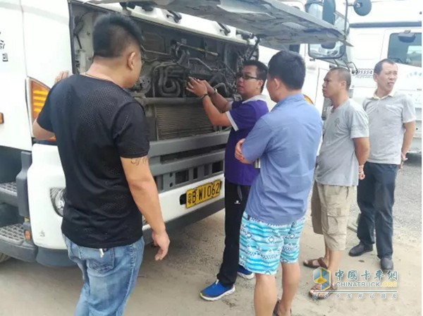 在实操现场,培训老师对车辆每一个按钮的使用环境、使用方法进行详细说明,同时也强调了对车辆出车前检查的重要性。针对排气制动及自动巡航的使用,培训老师进行现场操作演示,并特别嘱咐要对发动机的排气门间隙定期调整,通过实操的讲解,学员们普遍都表示受益匪浅。在对车辆进行点检培训的时候,广汽日野团队还发现,现场一台行驶里程为88万公里的车辆车况极佳,正是出于对车辆的了解与定期点检、维护等,才让车辆极佳的整体车况一直维持。