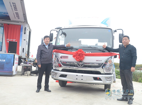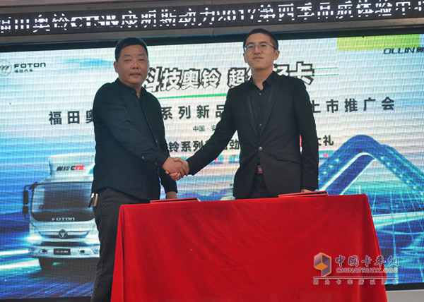 芜湖十田运输物流公司总经理韩甦(右)一次性采购了100台奥铃CTS