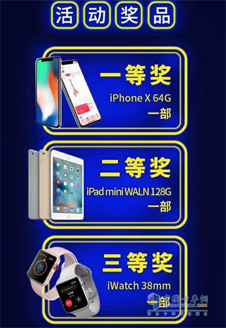 乘龙汽车为此次竞猜活动设置了丰厚的奖品。猜对即将上市的乘龙H5 (6*4牵引车)自重的用户,更是将有机会获得IPHONE X手机一部。