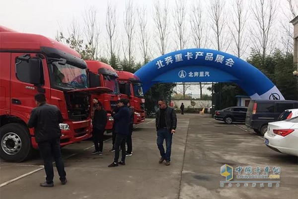 众多运输公司老板和广大司机朋友纷纷赶来参加北奔V3ET500马力牵引车产品推介会,到场来宾络绎不绝。