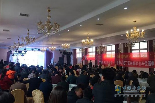 近日,由北奔重汽主办,北奔重汽经销商周口昕华汽车贸易有限公司承办的北奔V3ET大马力高效版牵引车产品体验活动推介会在周口市郸城县翠园生态酒店完成。