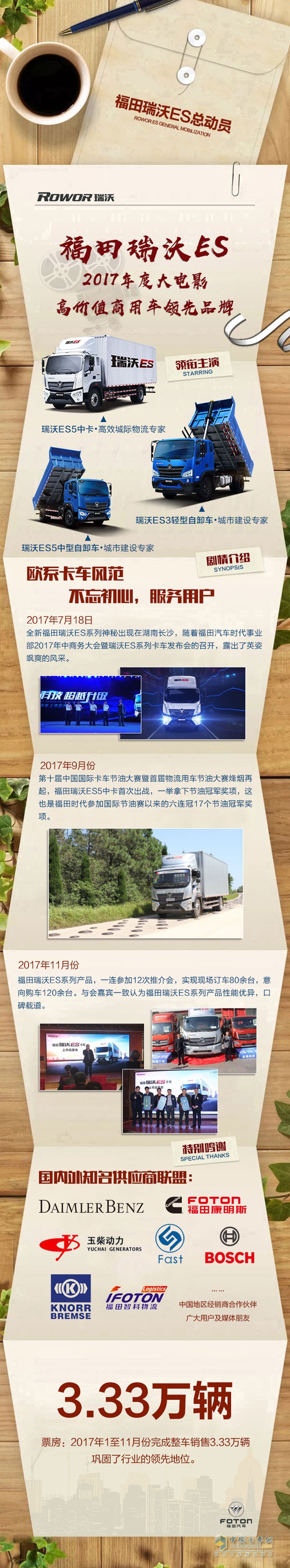 福田瑞沃ES全系出演年度大电影《福田瑞沃ES总动员》上映,这部电影讲述了福田瑞沃2107年的光辉世纪,到2017年12月已经累计票房3.33万辆,精彩内容敬请期待!