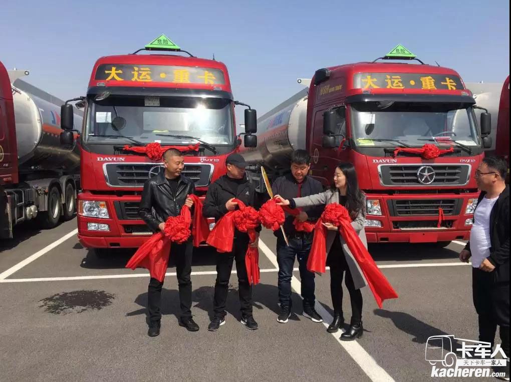 2018年3月22日,晴空万里,在美丽的盘锦,黑龙江省盛乾汽贸有限公司为大庆御金马运输有限公司举办了12台大运N8H危运车交车仪式。12辆崭新的大运N8H危运车戴上大红花一字排列等待用户的检阅。