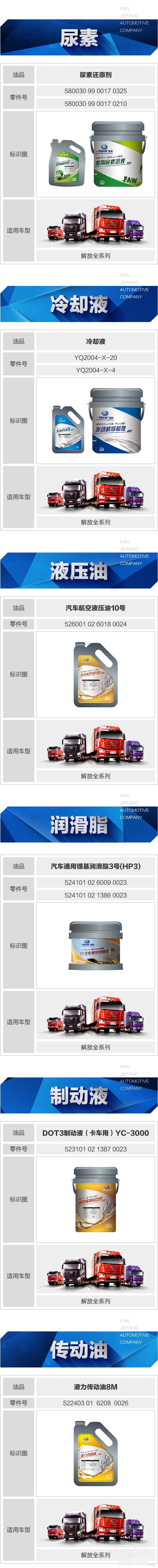 解放原厂油(液)使用对照表欢迎大家对照下图使用