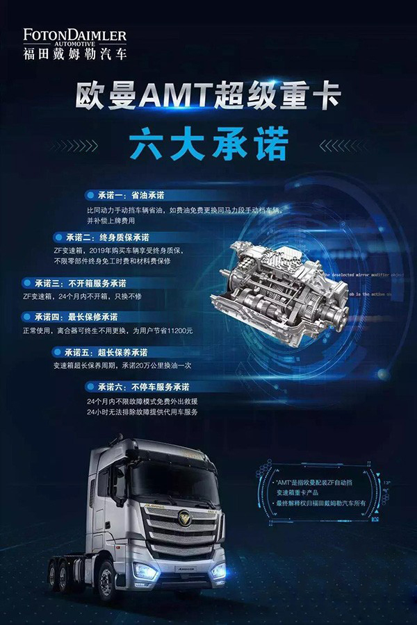 另外,为了给全国用户带来更好的用车和服务体验,福田戴姆勒汽车还为用户提供了省油、终身质保、不开箱服务、最长保修、超长保养、免费外出救援等六大售后服务承诺。