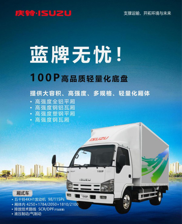 进入市场二十余年来,庆铃五十铃100P坚持品质为王,可以说红透了中国轻卡市场的半边天。100P作为高端窄体轻卡的标杆产品,搭载五十铃4K+MSB动力链,整车高可靠性、高性能、高安全性、低油耗给用户带来了高出勤率和低成本。随着用户对驾乘装需求的提高,庆铃五十铃100P轻卡也在不断升级自身产品技术、性能及配置,丰富产品规格,满足不同细分市场客户的需求。