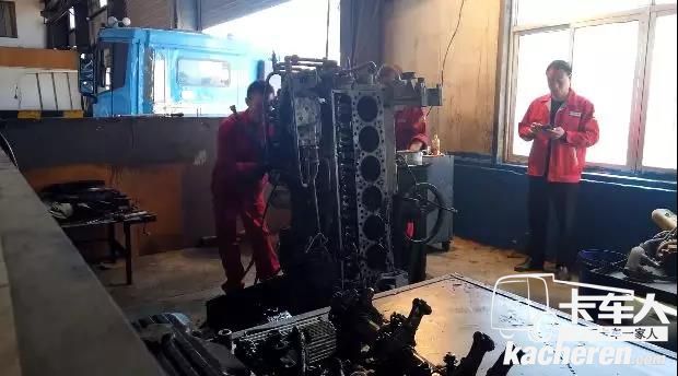 在等待车辆外部零件拆卸过程中,车队的牛队长自豪地说:“我们公司有38台480马力的天龙KX,10台560马力的天龙KX,除了百万公里的几台车,队里还有好几台跑了70万公里无大修的天龙KX。”