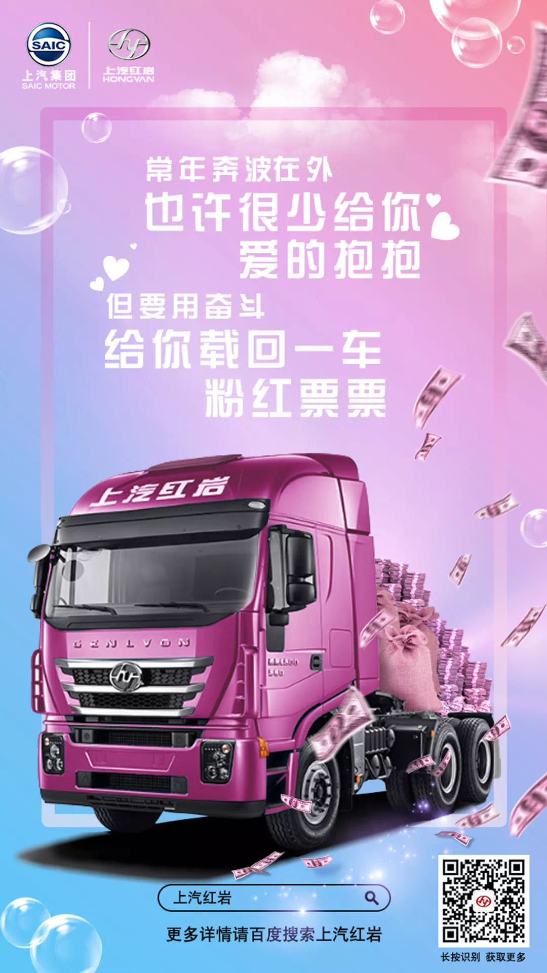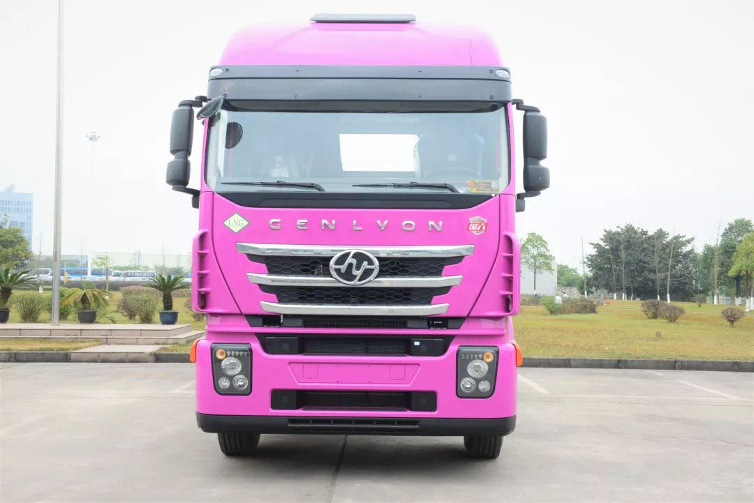 上汽红岩粉色版牵引车 强劲动力、稳定性能