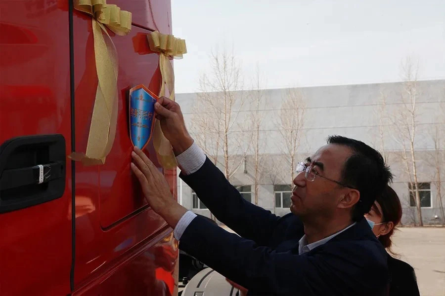 首批粘贴有“终身可托付”标志的北奔重卡发车