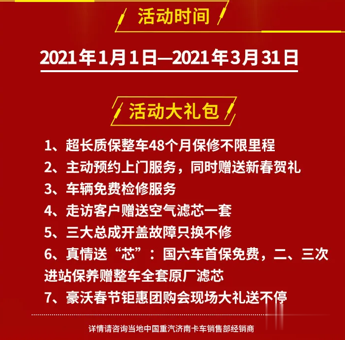 1、购买豪沃系列产品,可享受超长质保及三大总成开盖故障只换不修政策;