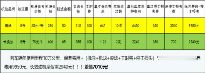 “这还不算啥,关键是它10万公里减少保养8次,这意味着我们能多出车8天。时间就是效益,每天就按500元收益算,就相当于多赚了4000多。”靳总监表示,保养费用加上多出车带来的收益,10万公里能省下7000元左右。