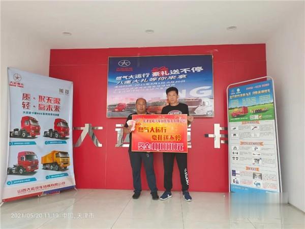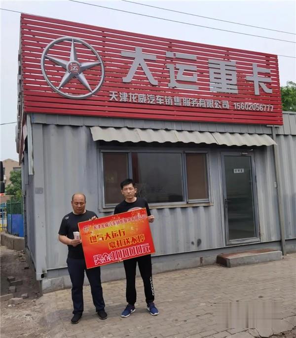 值得一提的是,李先生买大运N9H时正值二季度大运重卡于全国内开展“燃气大运行 豪礼送不停”燃气车感恩活动,李先生和合伙人白先生“锦鲤”附身,喜中二等奖——获一万元现金大奖。