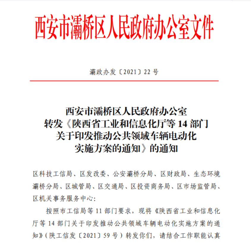 2021年3月20日,西安市下发“关于印发《推动公共领域车辆电动化实施方案》的通知(陕工信发〔2021〕59号)”文件,正式明确“促进新能源重型货车及专用车推广应用——推动城市渣土车电动化”。