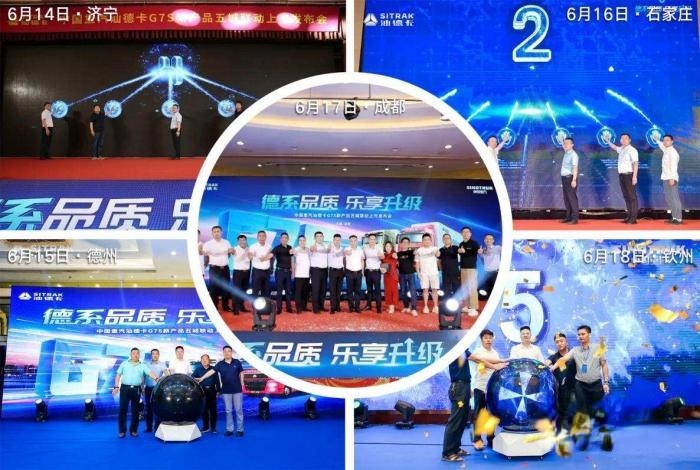 2022年6月14日至6月18日,“德系品质 乐享升级—— 中国重汽汕德卡G7S新产品五城联动上市发布会”先后在济宁、德州、石家庄、成都、钦州举行。现场嘉宾共同见证了汕德卡G7S新产品五城联动上市发布会的盛大开启,自汕德卡G7S上市以来,其智能、节油、可靠、高效的特点,更是赢得了高端物流市场的青睐与认可。