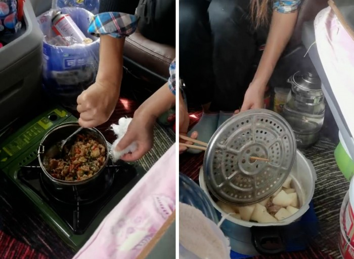 这辆车不仅是陈师傅家庭的重要收入来源,也是陈师傅夫妻移动的家,有时候出去一趟就一两个月。一是受疫情影响住宾馆不方便,二是本着开源节流的想法,他们大部分时间也生活在车上。虽然条件比不上居家,但是车里这一方天地,也是温馨的港湾。