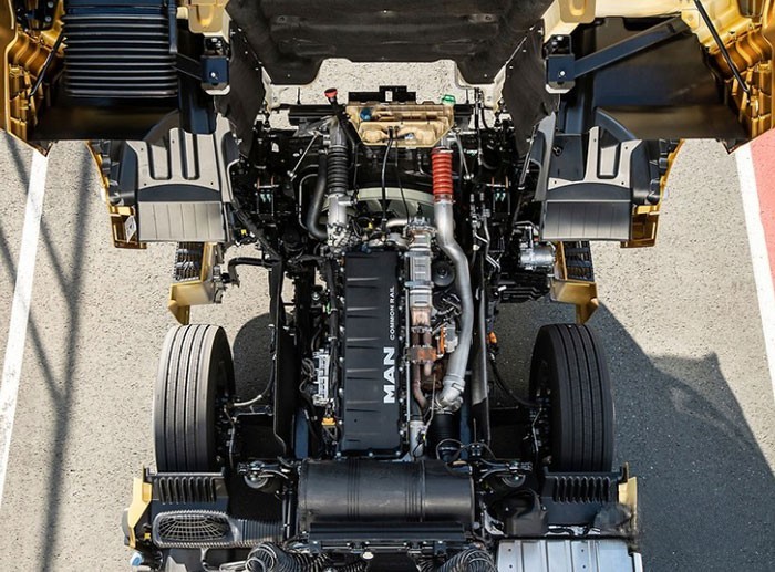 发动机匹配了MAN TipMatic® 12 26 DD手自一体变速箱,12个前进挡,2个倒挡,带空挡滑行功能。