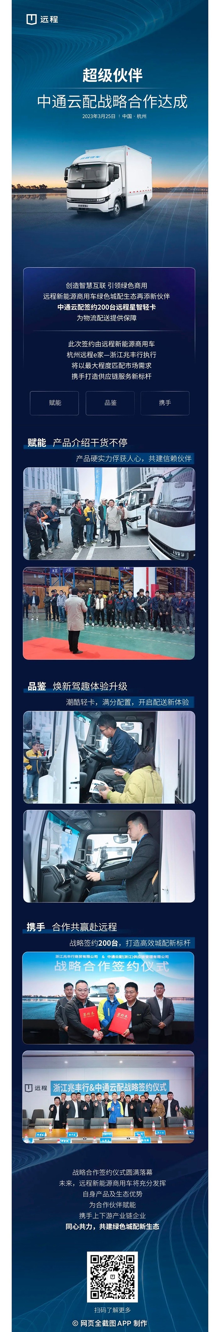 近日,远程新能源商用车绿色城配生态再添新伙伴,中通云配签约200台远程星智轻卡,为物流配送提供保障。