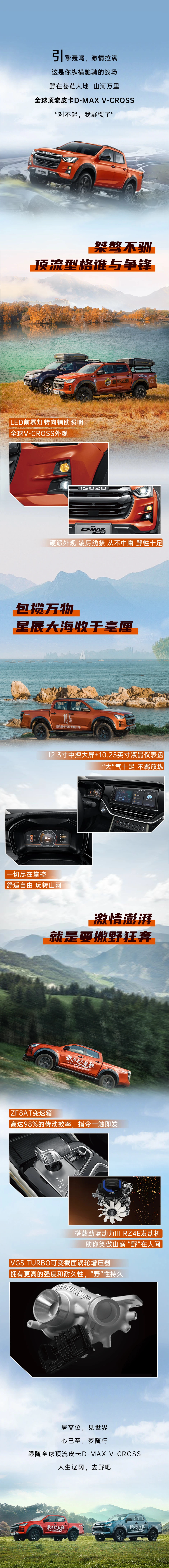 引擎轰鸣,激情拉满,这是你纵横驰骋的战场,野在苍茫大地,山河万里,全球顶流皮卡D-MAX V-CROSS,“对不起,我野惯了”