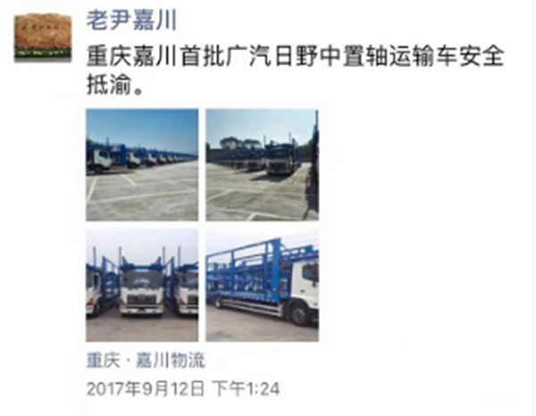首批广汽日野交付重庆嘉川时尹诗品发的朋友圈