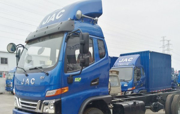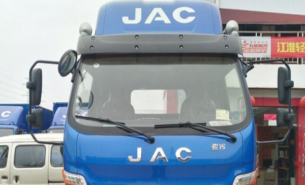 而江淮骏铃V9则不同,外观造型的线条整体来说比较流畅,因为江淮也是一家做商用车比较早的汽车厂家,其外观设计经历了数十年的发展,在近几年才确立下来一套家族式的脸谱,前脸镀铬元素运用会比较多,唯一有点诟病的是灯组造型有点怪异。