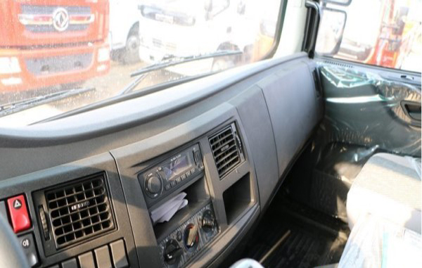 东风多利卡D9的内饰和外观一样,透露出一股老东风的味道。中控台为了方便司机观看和操作采用了弧形的设计,主驾驶座椅采用气囊座椅,提升驾驶的舒适度,座椅右侧是变速箱档把和断气刹拉手,后面一大一小两个杯座是东风中卡的特色。